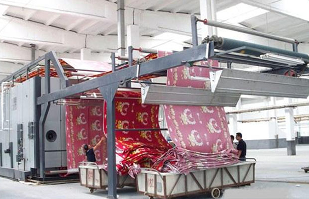 1、開機升溫前, 清理機內雜物,搞好透視窗衛生,在慢車速時加好主鏈條及導布輥兩頭的潤滑油,空轉二二 圈正常后,把機體內的導布拉挺平直,保持在正中位置,關好上下門,打開油閥自然升溫。當溫度達90℃以上時,開始打開鼓風散熱電機快速升溫,溫控儀調節至工藝要求溫度(一般180℃左右)。