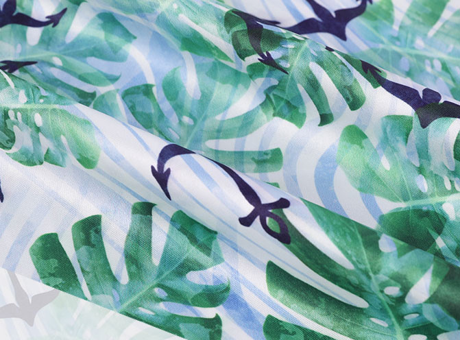 活性印染也被稱作反應性染料,含有能與纖維分子發生反應的活性基團。在染色和印花過程中,活性染料的活性基團與纖維分子形成結合,使得染料和纖維形成一個整體。使用活性染料滲透進面料,而形成的印花。
