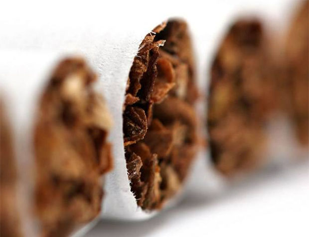 海藻酸鈉在煙草生產中有多種作用,其中在制備煙草薄片中,海藻酸鈉可以被用作為粘結劑和成膜材料。使用過程中,以適量的海藻酸鈉作為成膜材料,該膜與無機填料、增塑劑、煙草提取物、香料等添加劑充分混合后,經鈣、鋁、銅、鋅處理、烘干、切絲后與煙草混合即可使用。