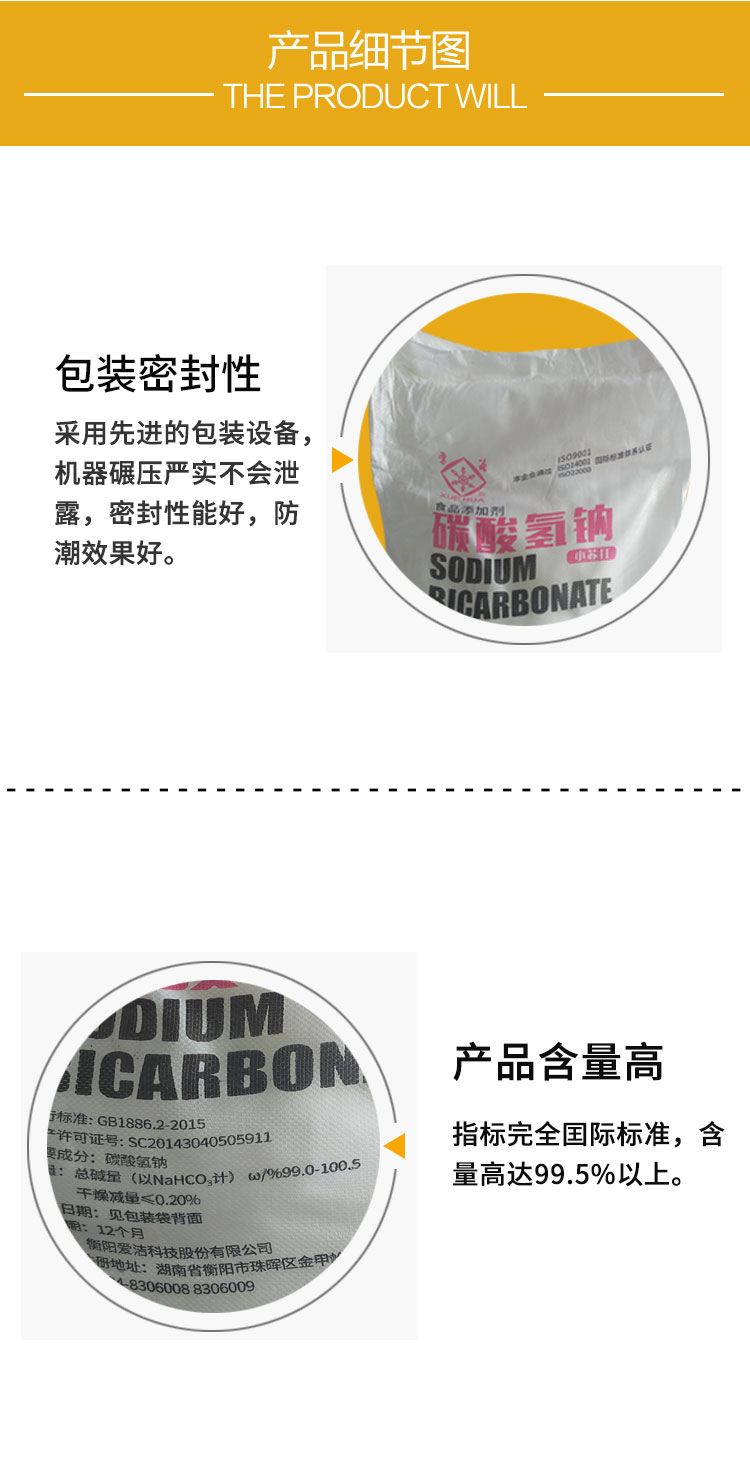 雪花食品級小蘇打為白色粉末,白度好,高純度。